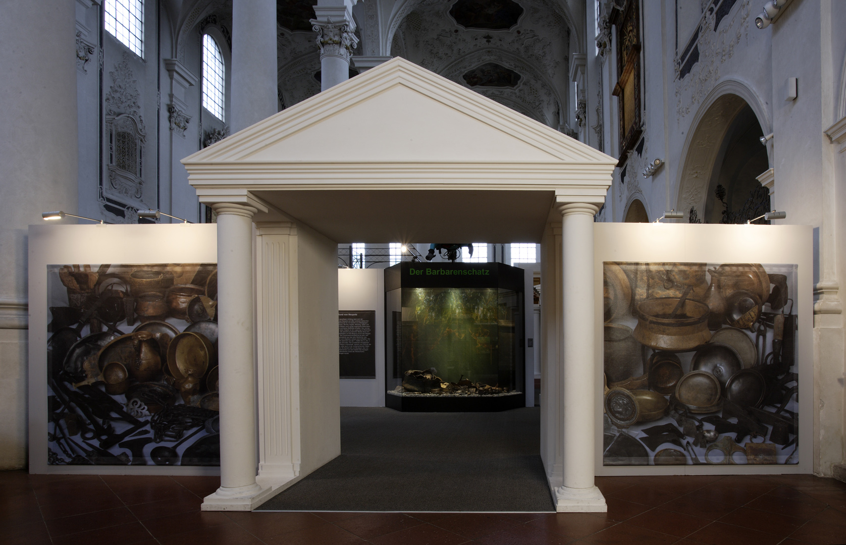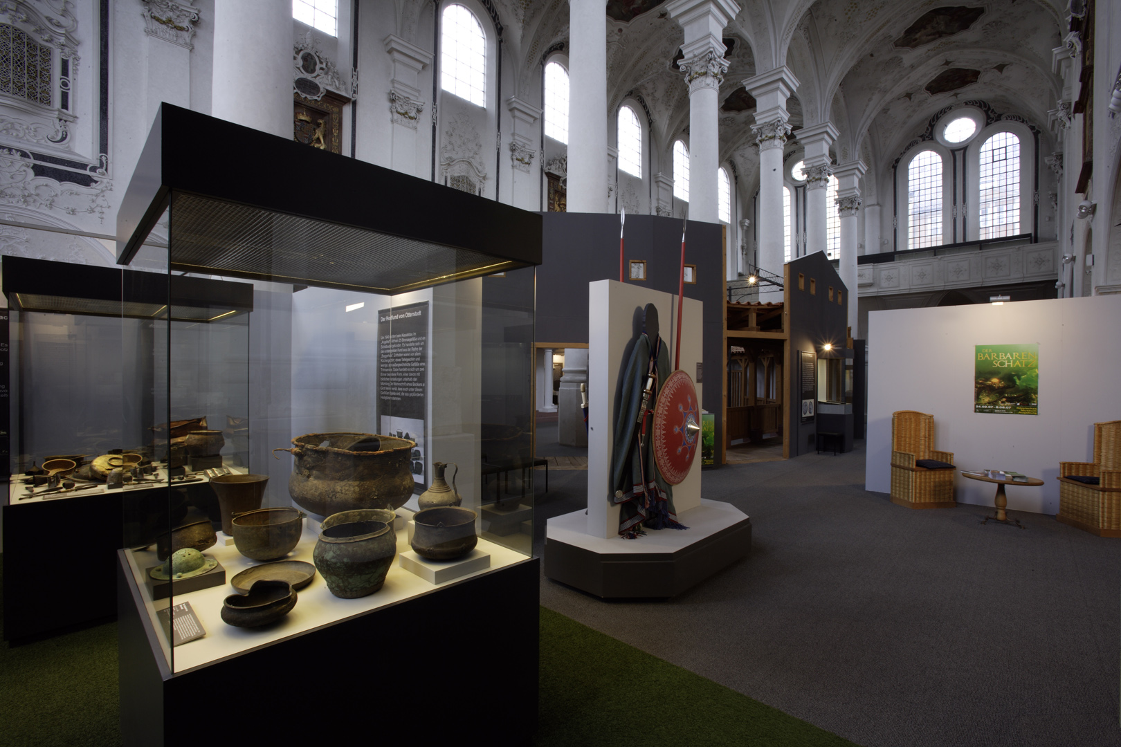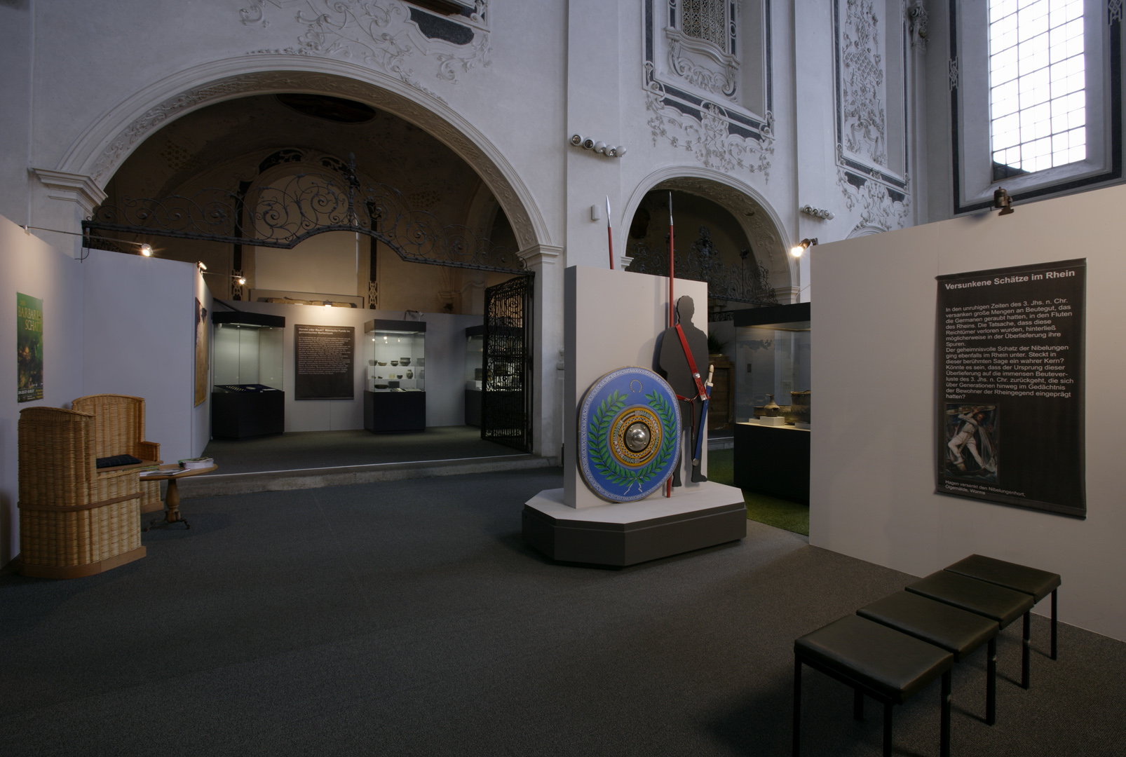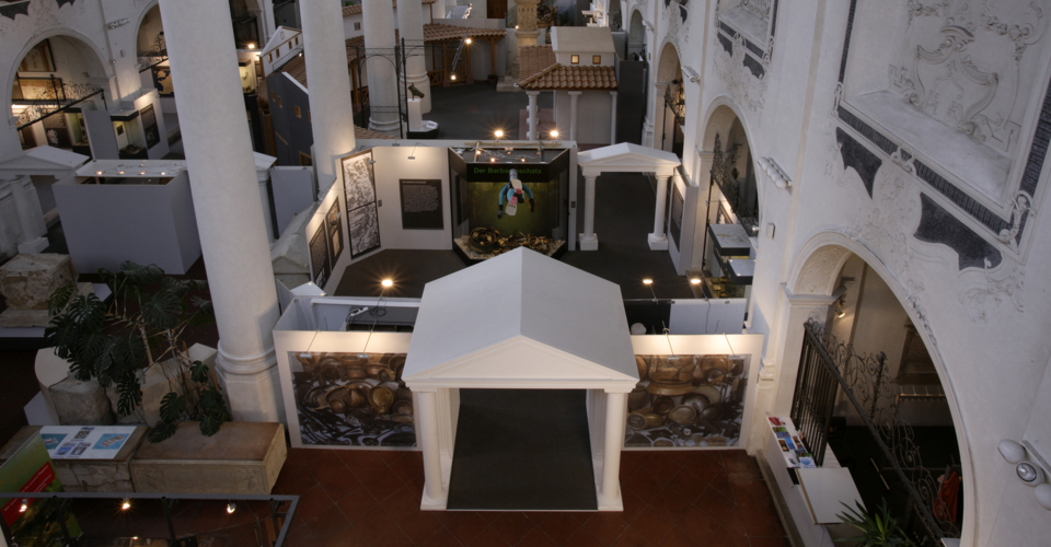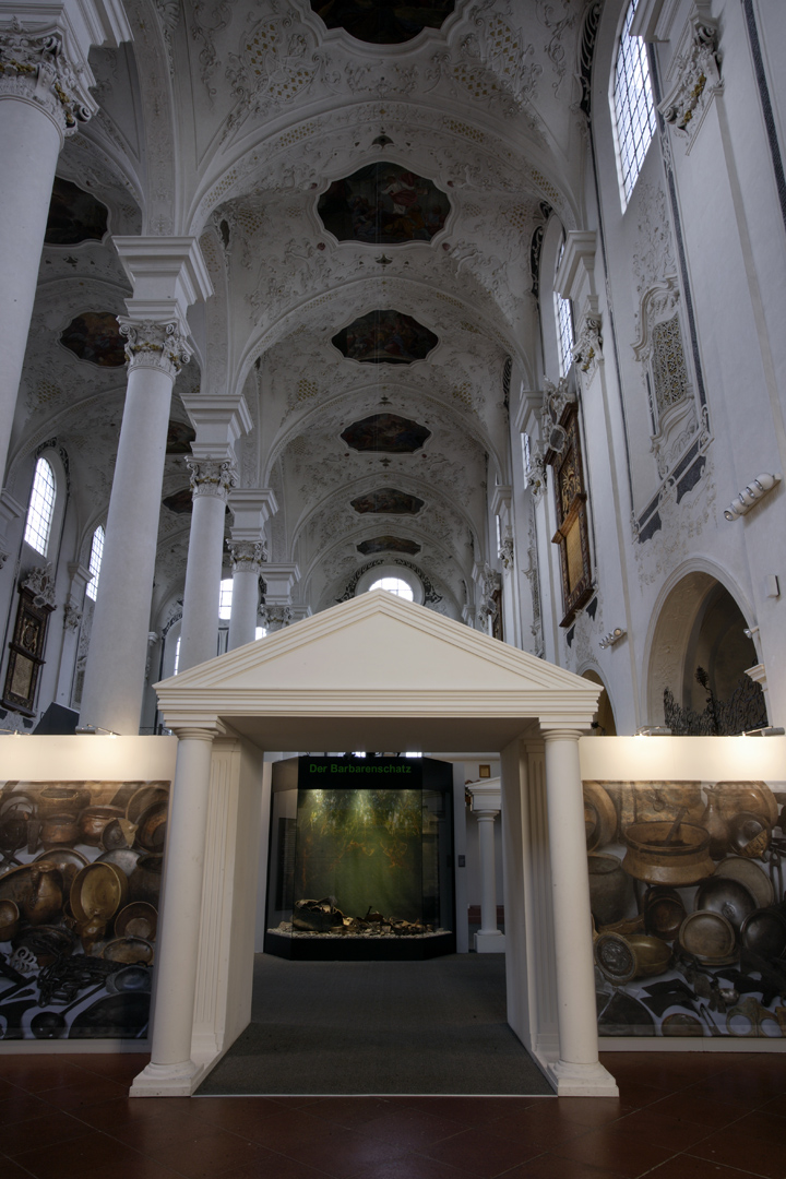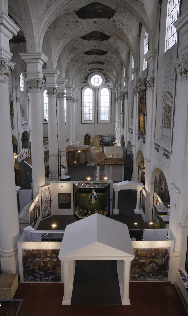 Die in Speyer konzipierte und auch dort erstmals gezeigte Ausstellung "Der Barbarenschatz", war ein Projekt das von mehreren Museen gemeinsam getragen und an vielen Orten in Deutschland, Luxemburg, Österreich, Frankreich und Spanien gezeigt wurde. Eine Station war Augsburg, wo die Ausstellung im Römischen Museum einer ehemaligen Dominikanerkirche, aufgebaut war und großes Interesse beim Publikum fand. Die hohen, hellen Räume waren eine Herausforderung für die Ausstellungsmacher, da die Ausstellung eher für abgedunkelte, kleinere Räume geplant war. Die Geschichte jedoch, die diese Ausstellung erzählen sollte: die germanischen Plünderungen römischer Provinzen im 3. Jahrhundert n. Chr., konnte in diesen hellen, weiten Räumen hervorragend vermittelt werden.