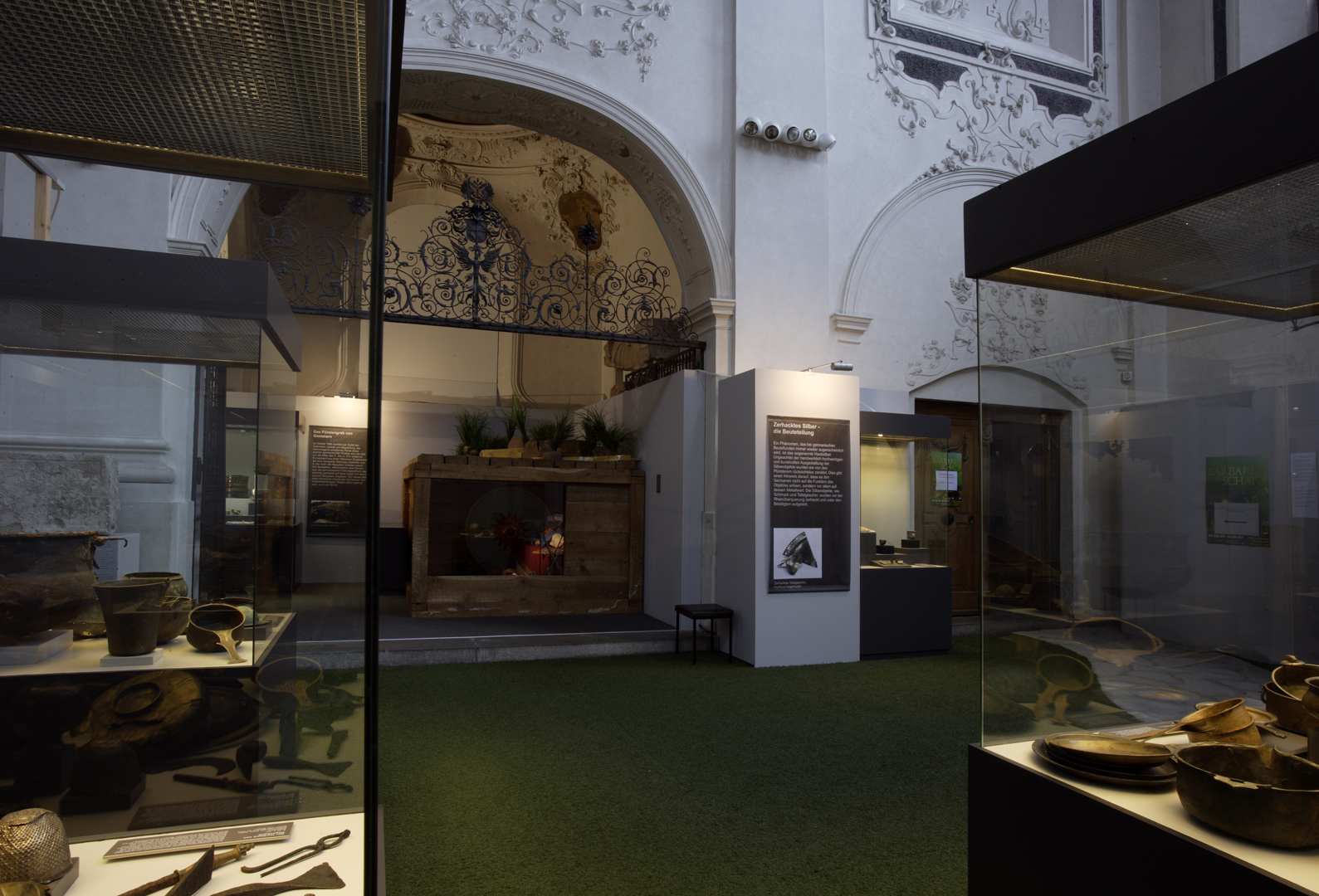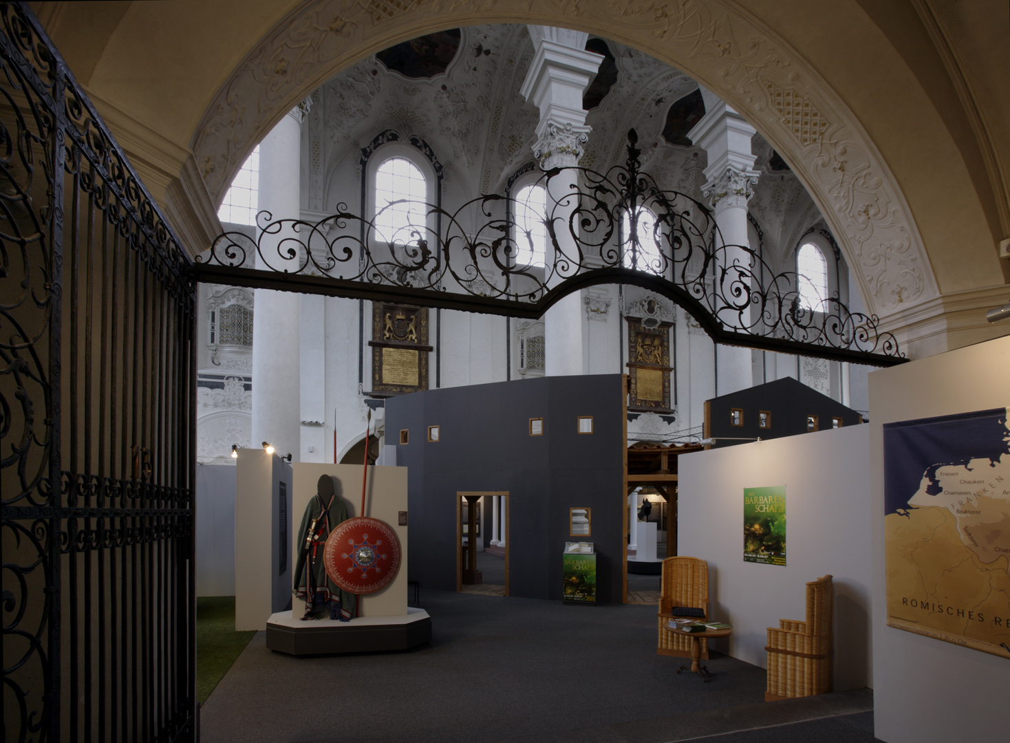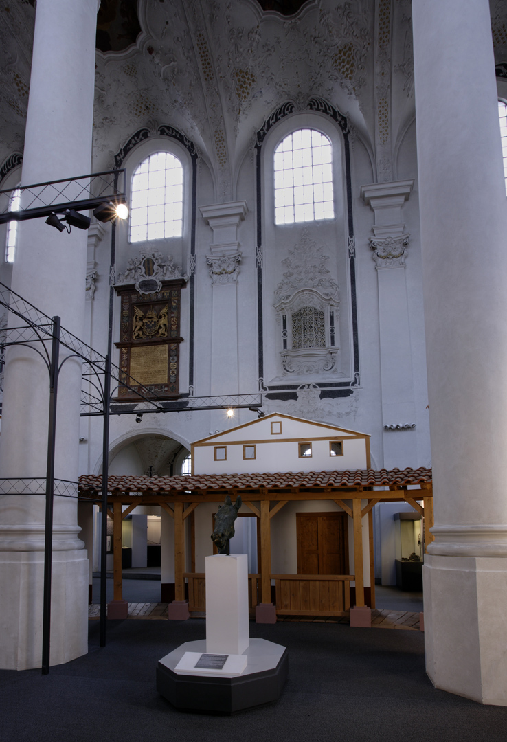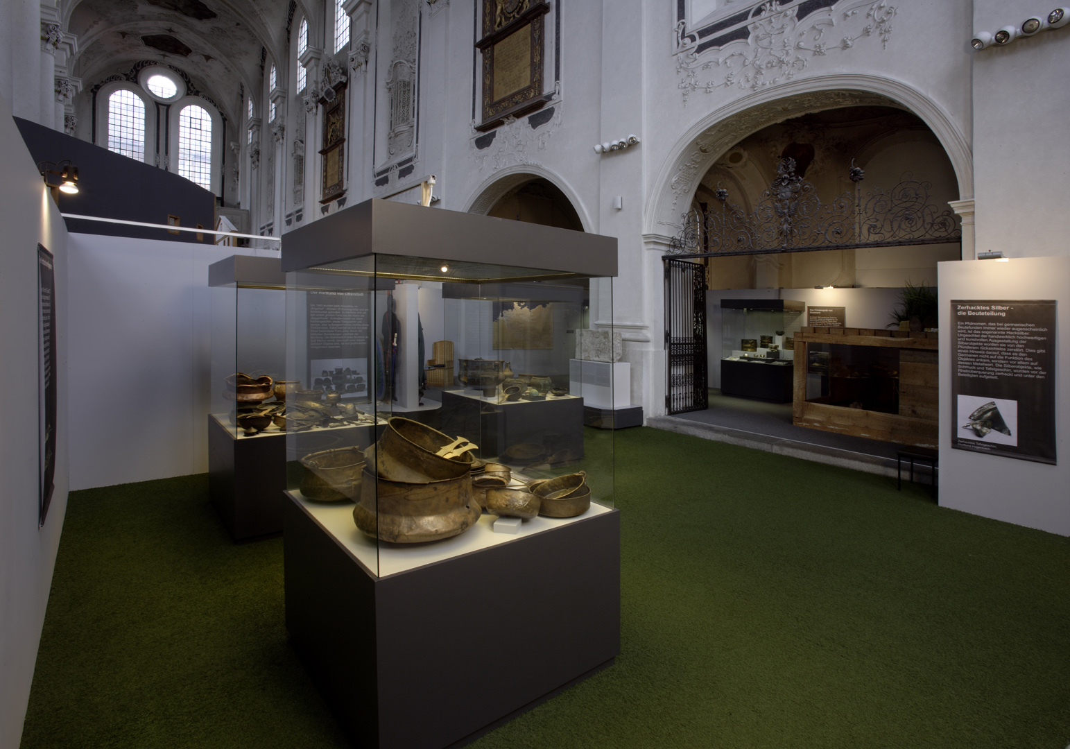 Die in Speyer konzipierte und auch dort erstmals gezeigte Ausstellung "Der Barbarenschatz", war ein Projekt das von mehreren Museen gemeinsam getragen und an vielen Orten in Deutschland, Luxemburg, Österreich, Frankreich und Spanien gezeigt wurde. Eine Station war Augsburg, wo die Ausstellung im Römischen Museum einer ehemaligen Dominikanerkirche, aufgebaut war und großes Interesse beim Publikum fand. Die hohen, hellen Räume waren eine Herausforderung für die Ausstellungsmacher, da die Ausstellung eher für abgedunkelte, kleinere Räume geplant war. Die Geschichte jedoch, die diese Ausstellung erzählen sollte: die germanischen Plünderungen römischer Provinzen im 3. Jahrhundert n. Chr., konnte in diesen hellen, weiten Räumen hervorragend vermittelt werden.
