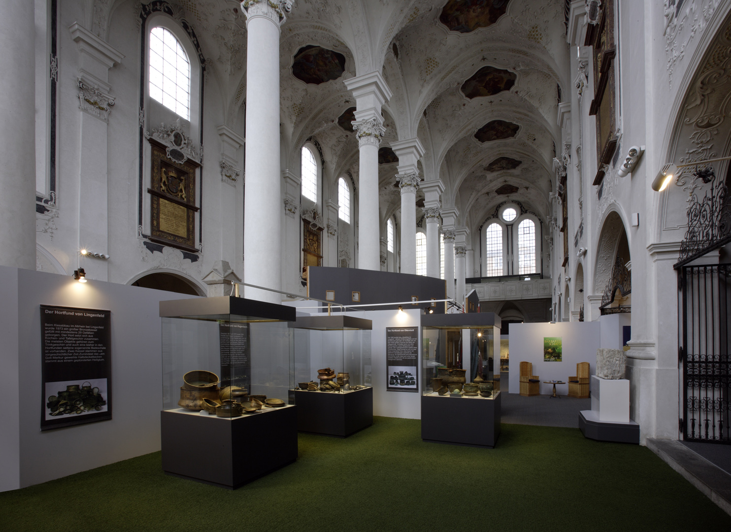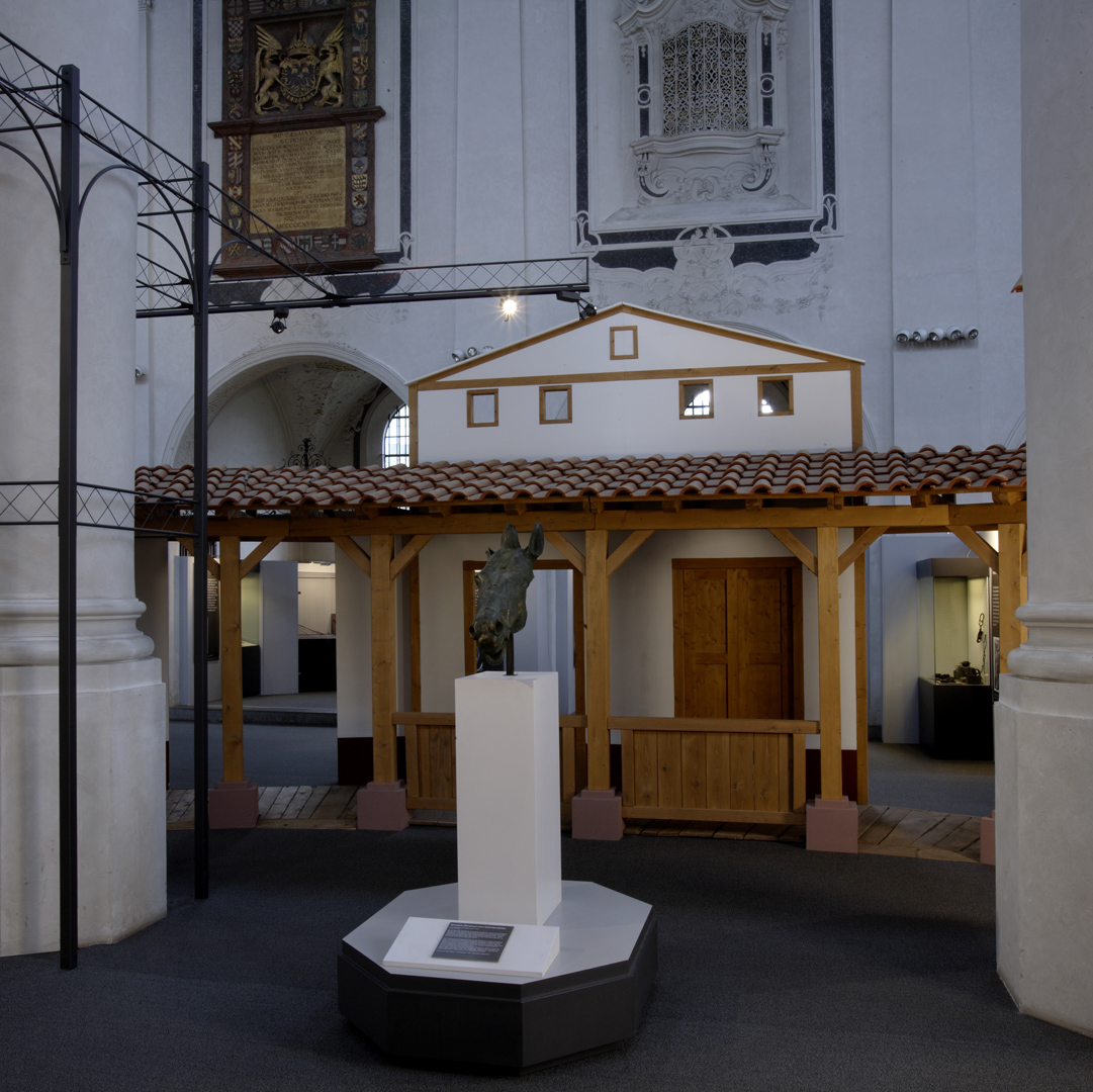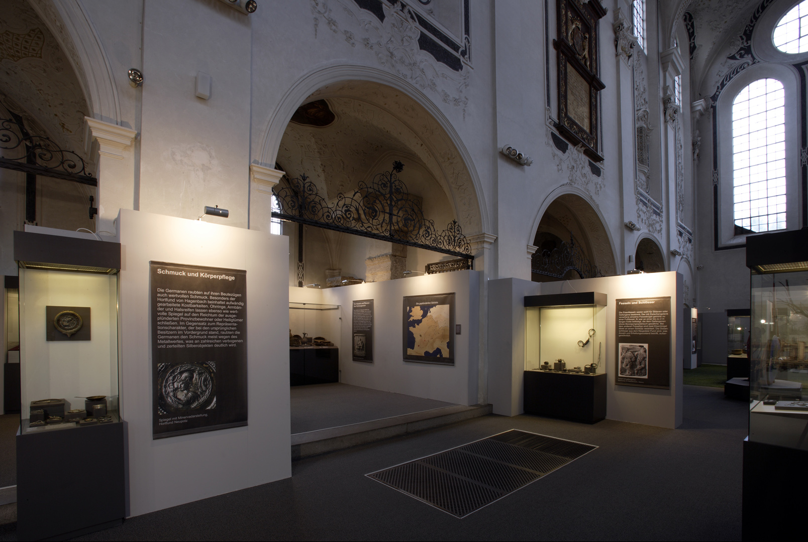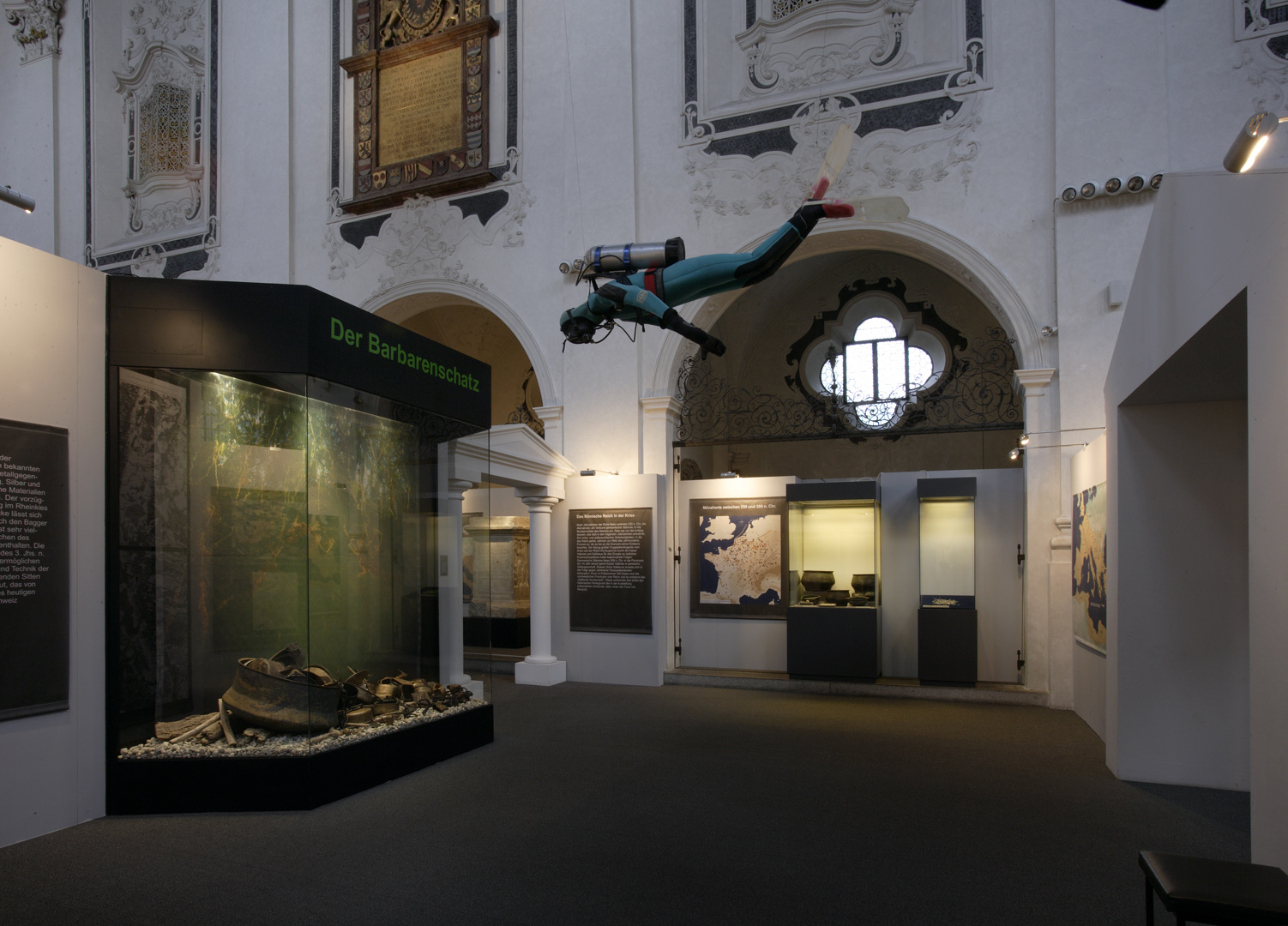 Die in Speyer konzipierte und auch dort erstmals gezeigte Ausstellung "Der Barbarenschatz", war ein Projekt das von mehreren Museen gemeinsam getragen und an vielen Orten in Deutschland, Luxemburg, Österreich, Frankreich und Spanien gezeigt wurde. Eine Station war Augsburg, wo die Ausstellung im Römischen Museum einer ehemaligen Dominikanerkirche, aufgebaut war und großes Interesse beim Publikum fand. Die hohen, hellen Räume waren eine Herausforderung für die Ausstellungsmacher, da die Ausstellung eher für abgedunkelte, kleinere Räume geplant war. Die Geschichte jedoch, die diese Ausstellung erzählen sollte: die germanischen Plünderungen römischer Provinzen im 3. Jahrhundert n. Chr., konnte in diesen hellen, weiten Räumen hervorragend vermittelt werden.