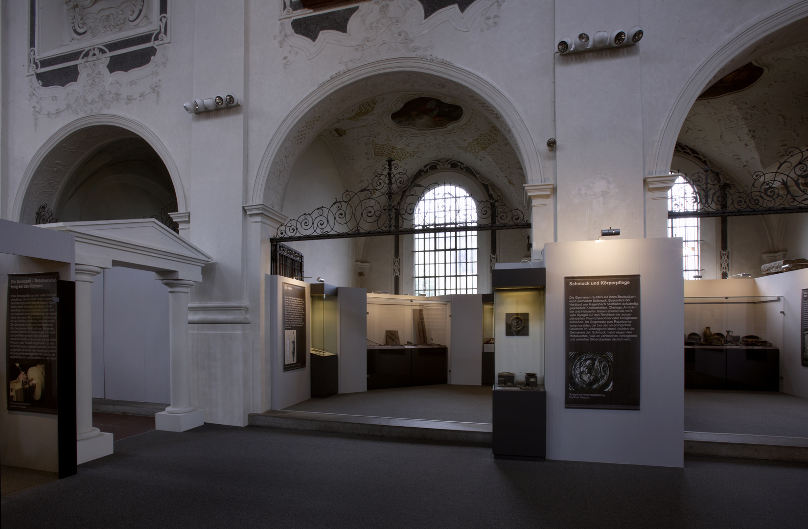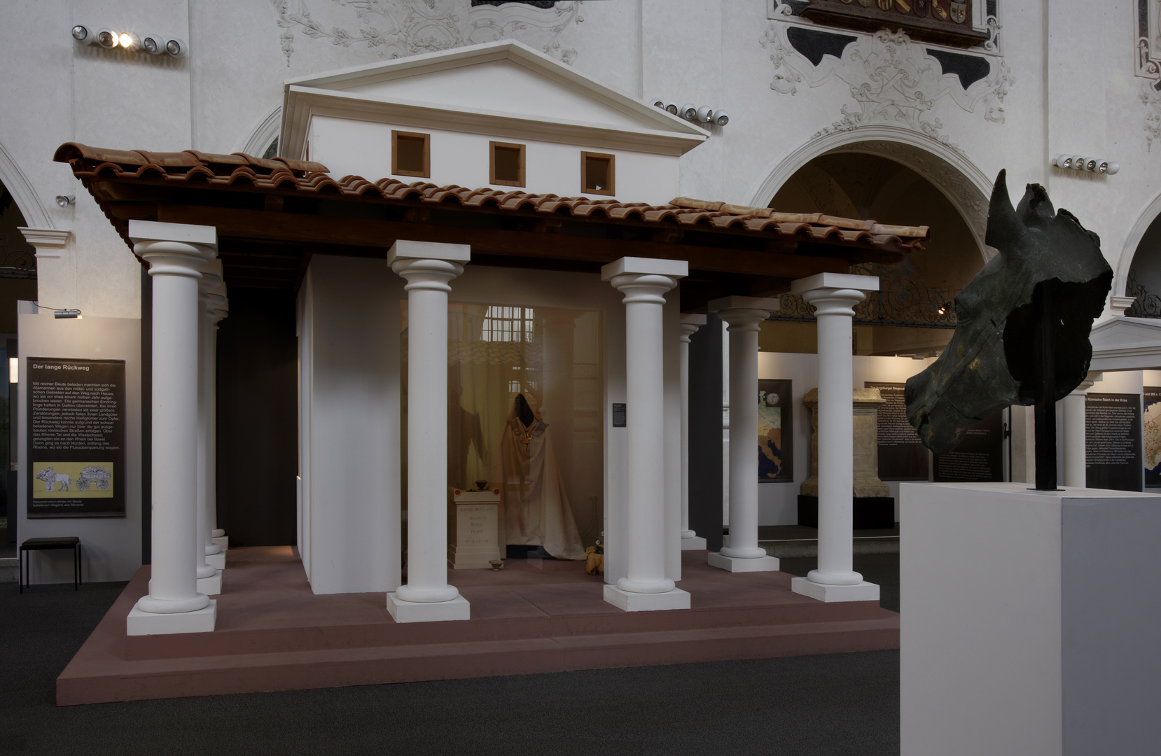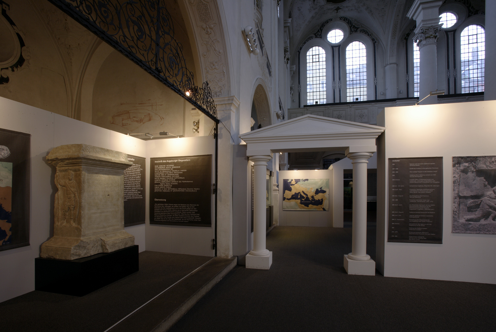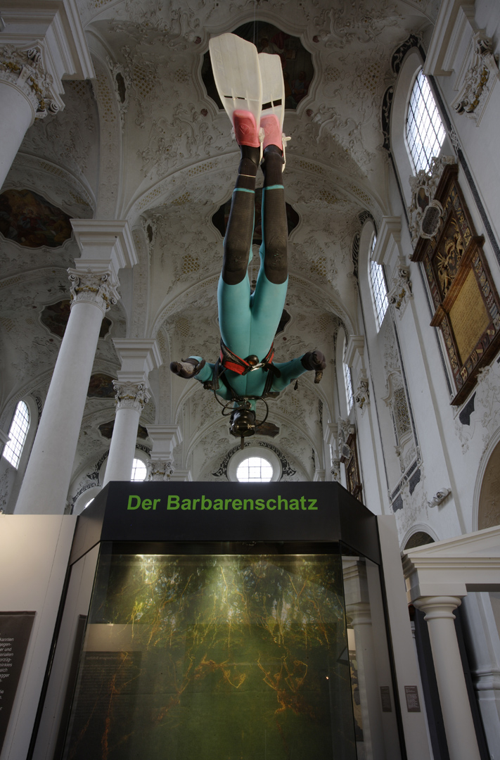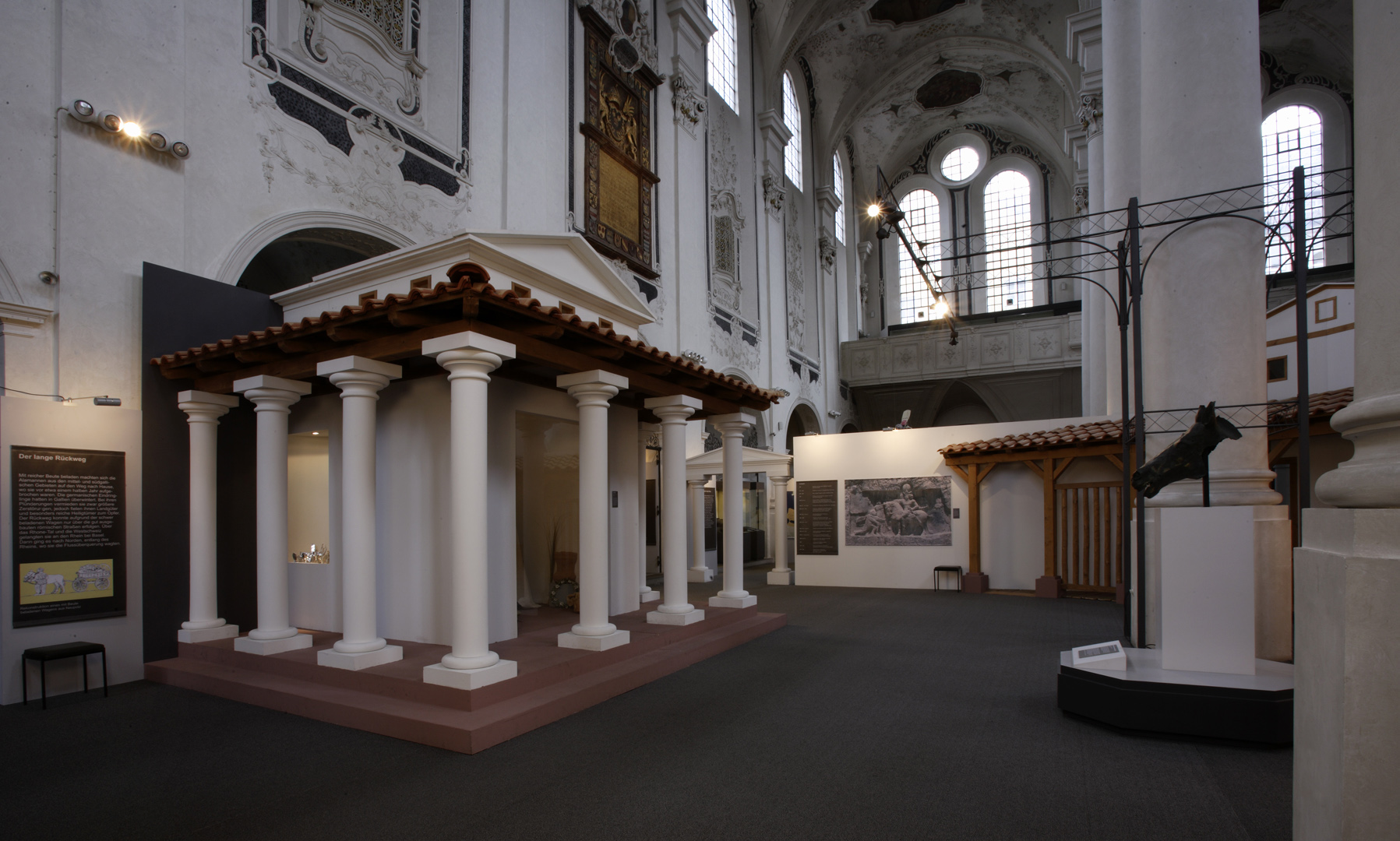 Die in Speyer konzipierte und auch dort erstmals gezeigte Ausstellung "Der Barbarenschatz", war ein Projekt das von mehreren Museen gemeinsam getragen und an vielen Orten in Deutschland, Luxemburg, Österreich, Frankreich und Spanien gezeigt wurde. Eine Station war Augsburg, wo die Ausstellung im Römischen Museum einer ehemaligen Dominikanerkirche, aufgebaut war und großes Interesse beim Publikum fand. Die hohen, hellen Räume waren eine Herausforderung für die Ausstellungsmacher, da die Ausstellung eher für abgedunkelte, kleinere Räume geplant war. Die Geschichte jedoch, die diese Ausstellung erzählen sollte: die germanischen Plünderungen römischer Provinzen im 3. Jahrhundert n. Chr., konnte in diesen hellen, weiten Räumen hervorragend vermittelt werden.