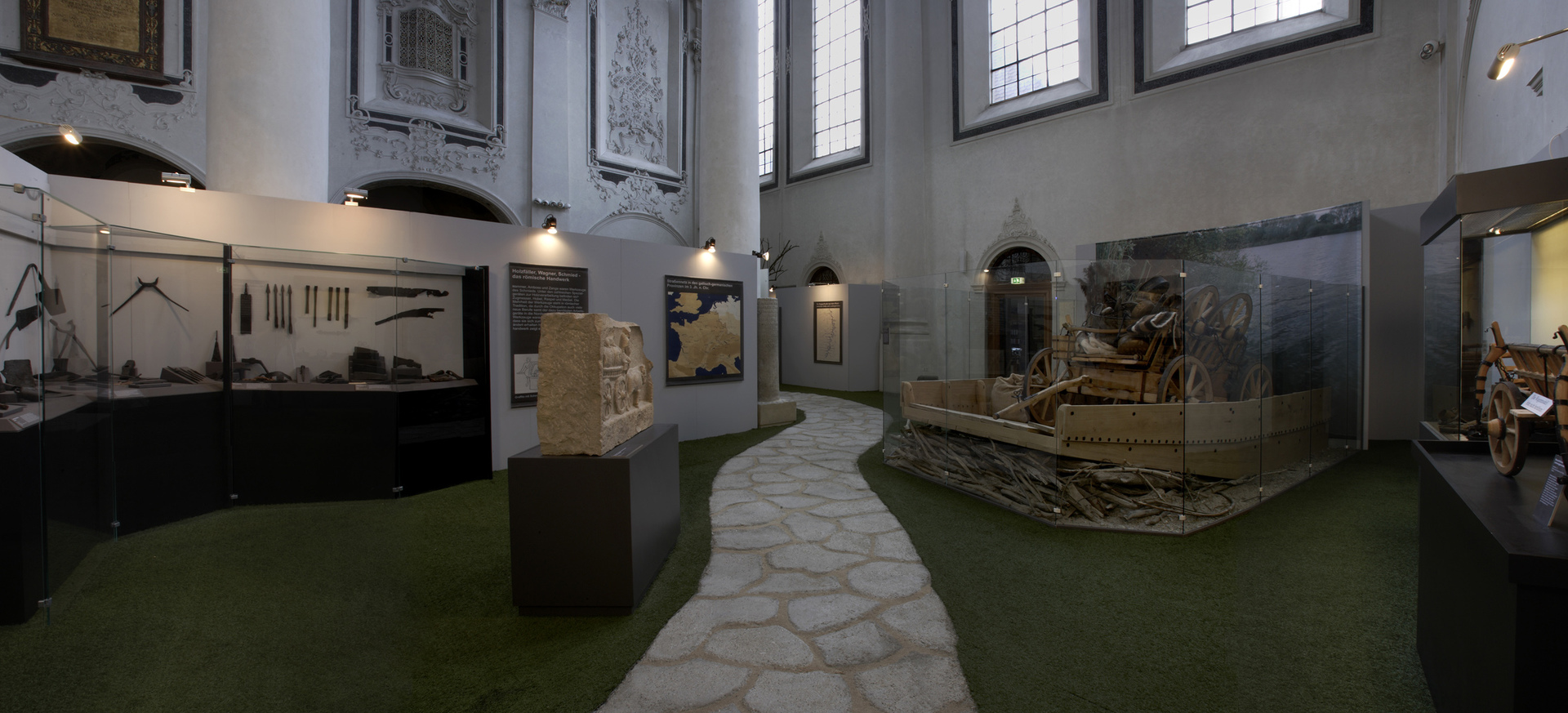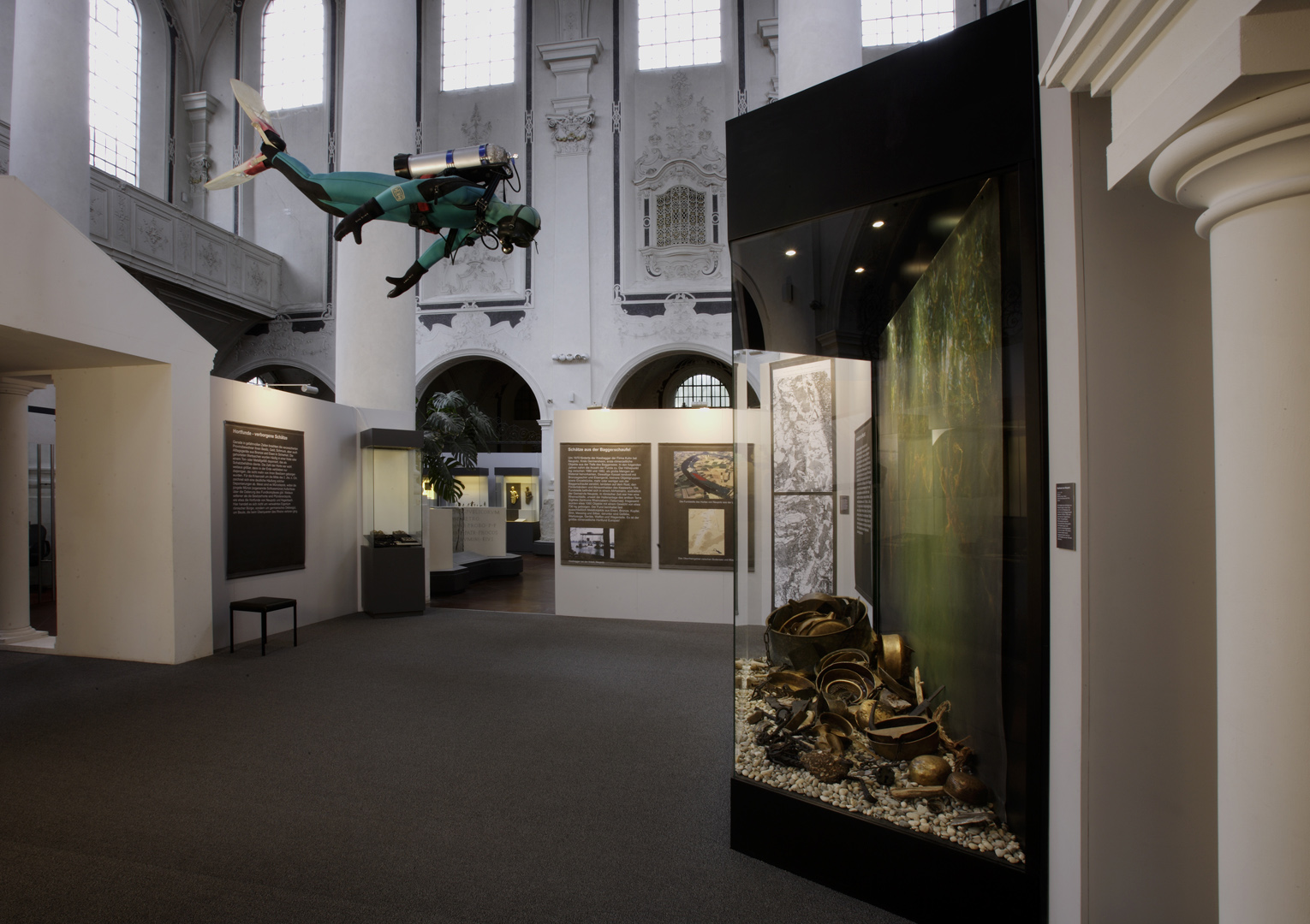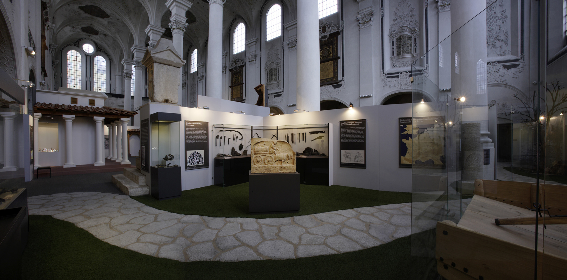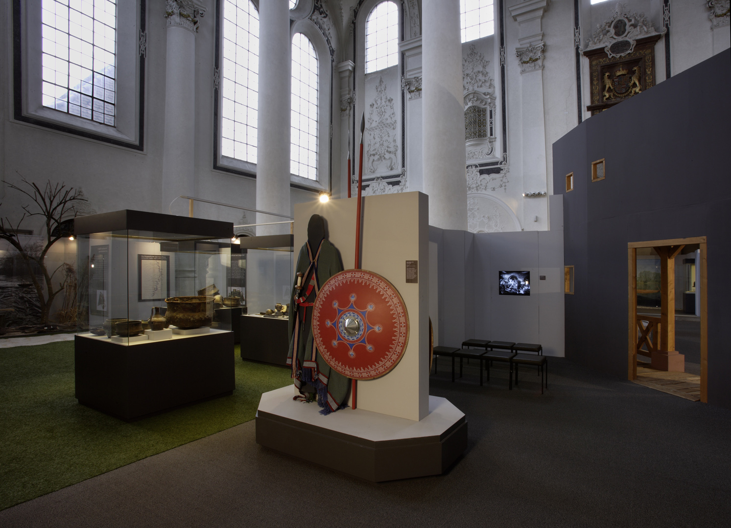 Die in Speyer konzipierte und auch dort erstmals gezeigte Ausstellung "Der Barbarenschatz", war ein Projekt das von mehreren Museen gemeinsam getragen und an vielen Orten in Deutschland, Luxemburg, Österreich, Frankreich und Spanien gezeigt wurde. Eine Station war Augsburg, wo die Ausstellung im Römischen Museum einer ehemaligen Dominikanerkirche, aufgebaut war und großes Interesse beim Publikum fand. Die hohen, hellen Räume waren eine Herausforderung für die Ausstellungsmacher, da die Ausstellung eher für abgedunkelte, kleinere Räume geplant war. Die Geschichte jedoch, die diese Ausstellung erzählen sollte: die germanischen Plünderungen römischer Provinzen im 3. Jahrhundert n. Chr., konnte in diesen hellen, weiten Räumen hervorragend vermittelt werden.