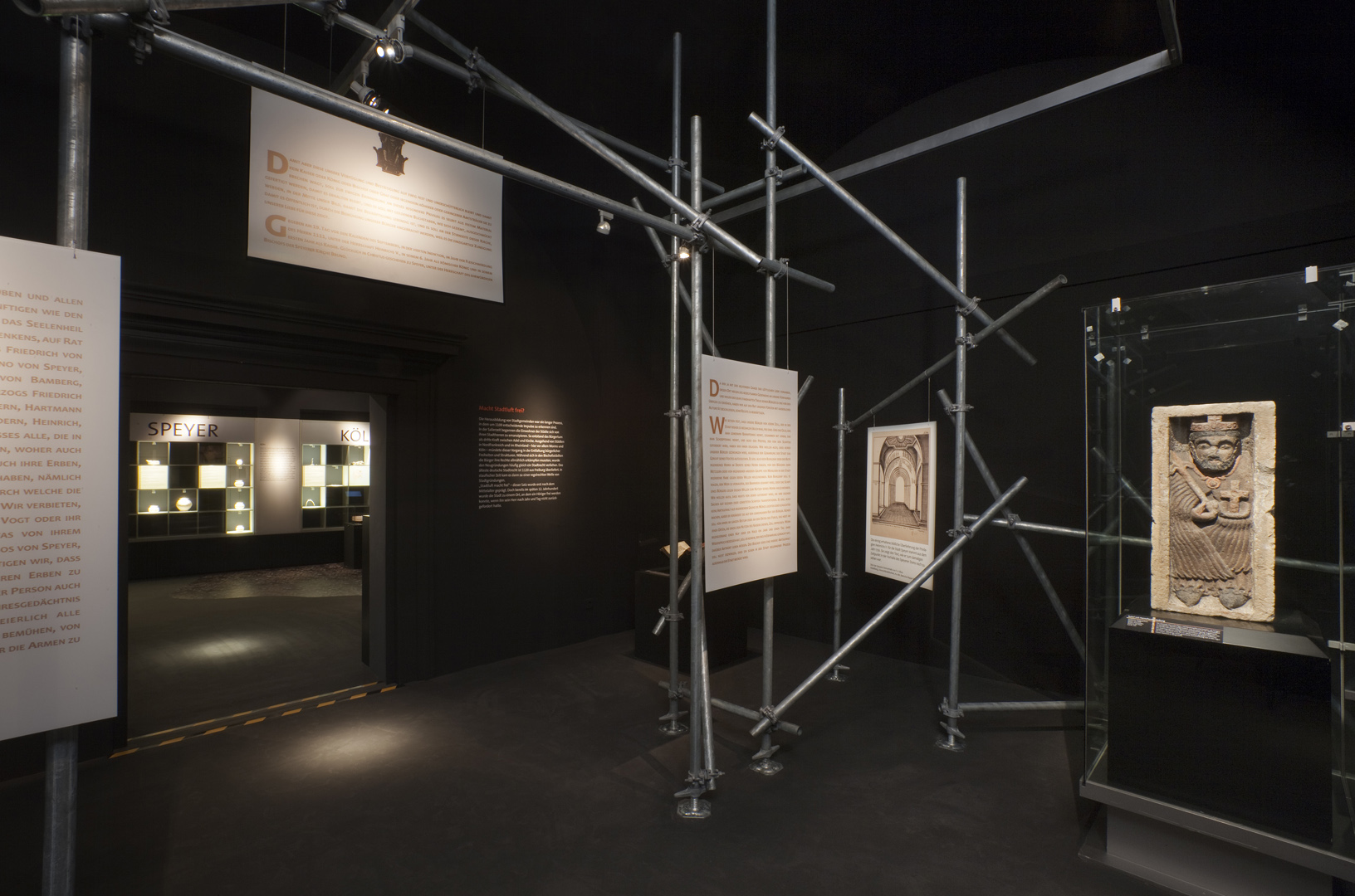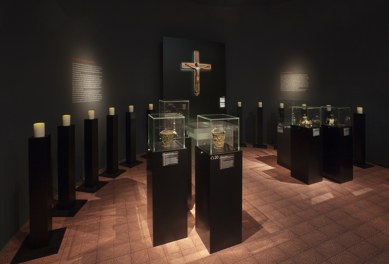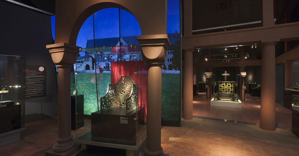Auf rund 1500 m2 zeichnete die Ausstellung ein möglichst vielseitiges Bild dieser spannenden Umbruchzeit. Einzigartige Originale – bedeutende Handschriften, liturgische Geräte, Architekturelemente, Grabfunde, Waffen und Schmuck – aus zahlreichen deutschen und europäischen Museen, ergänzt durch spannende Inszenierungen und interaktive multimediale Einheiten nahmen den Besucher mit auf eine Reise ins Mittelalter.